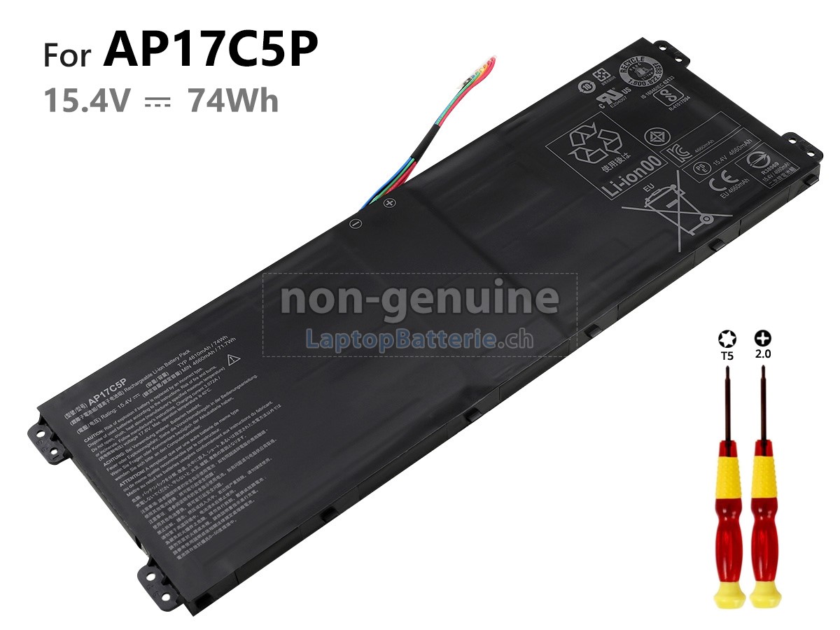 Unser Website ist Ihre Quelle der hochwertigen Acer-Laptop-Batterien! Diese brandneue 74Wh (4 zelle) Acer AP17C5P Ersatz Li-Polymer-Akkus wird mit hochwertigen Zellen von Samsung, LG und Panasonic gefertigt, um die maximale Leistung zu versichern. Das Gehäuse des Acer AP17C5P Batteriepacks wird aus nicht entzündbarer und sehr robuster Plastik gefertigt, die flammgeschützt und haltbar ist, wenn sie von einer niedrigen Höhe fällt.