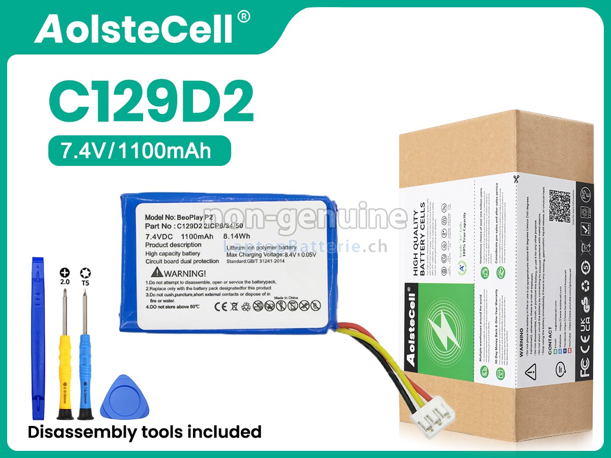 Unser Website ist Ihre Quelle der hochwertigen Bang Olufsen-Lautsprecher-Batterien! Diese brandneue 1100mAh (2 zelle) Bang Olufsen C129D2 Ersatz Li-ion-Akkus wird mit hochwertigen Zellen von Samsung, LG und Panasonic gefertigt, um die maximale Leistung zu versichern. Das Gehäuse des Bang Olufsen C129D2 Batteriepacks wird aus nicht entzündbarer und sehr robuster Plastik gefertigt, die flammgeschützt und haltbar ist, wenn sie von einer niedrigen Höhe fällt.