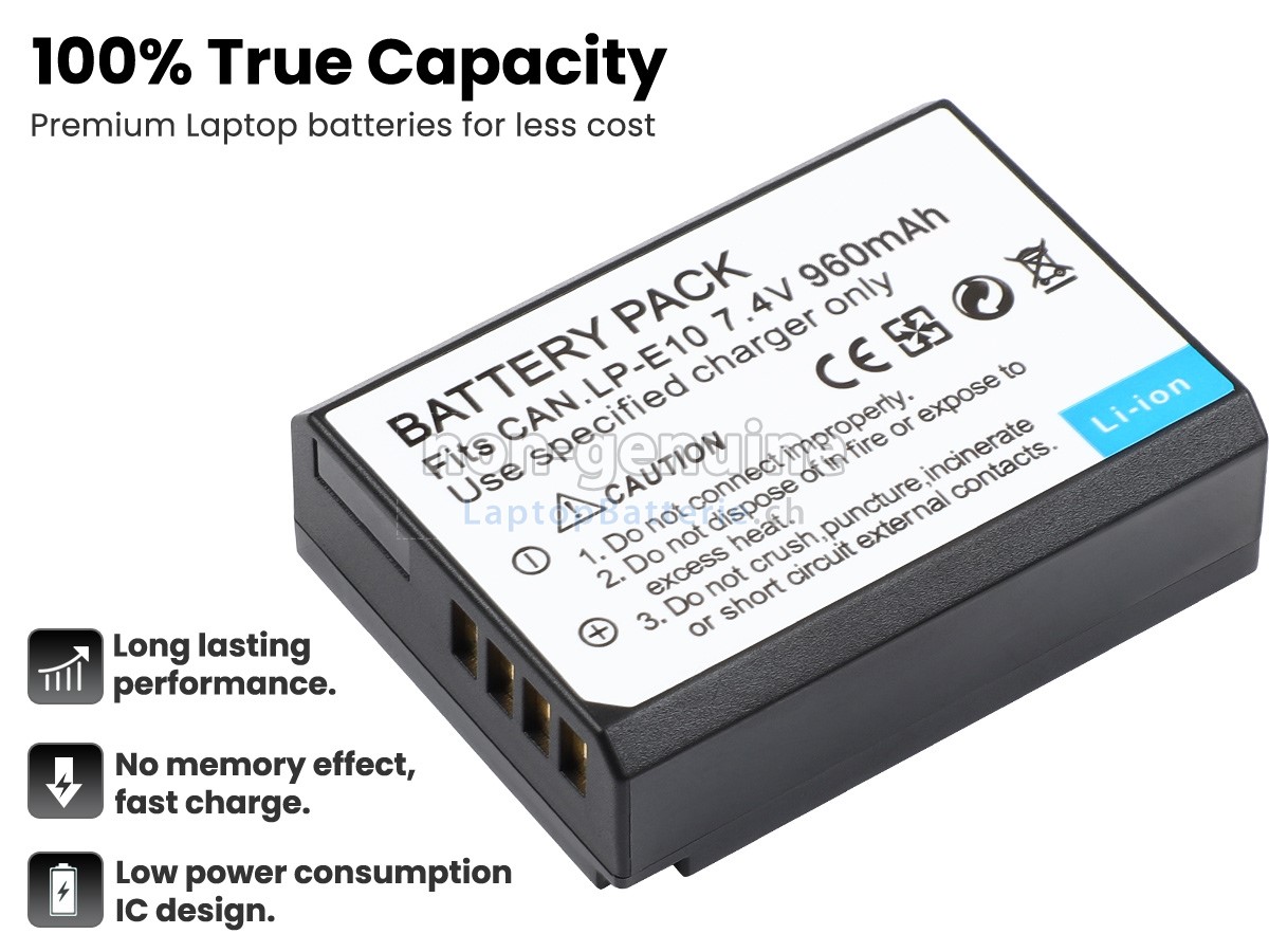 Unser Website ist Ihre Quelle der hochwertigen Canon-Batterien! Diese brandneue 7.1Wh (2 zelle) Canon EOS 1300D Ersatz Li-ion-Akkus wird mit hochwertigen Zellen von Samsung, LG und Panasonic gefertigt, um die maximale Leistung zu versichern. Das Gehäuse des Canon EOS 1300D Batteriepacks wird aus nicht entzündbarer und sehr robuster Plastik gefertigt, die flammgeschützt und haltbar ist, wenn sie von einer niedrigen Höhe fällt.