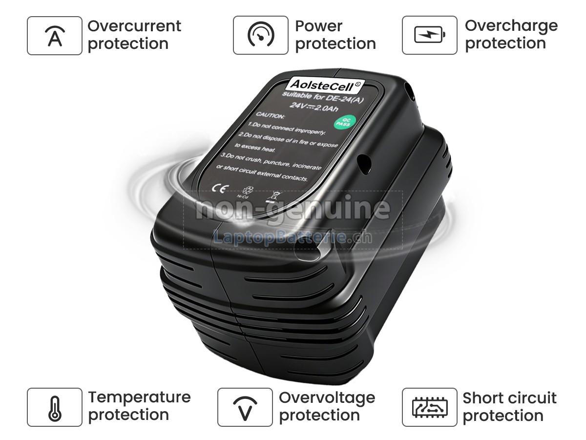 Unser Website ist Ihre Quelle der hochwertigen DeWALT-Elektrowerkzeuge-Batterien! Diese brandneue 2000mAh (20 zelle) DeWALT DC222KA Ersatz Ni-CD-Akkus wird mit hochwertigen Zellen von Samsung, LG und Panasonic gefertigt, um die maximale Leistung zu versichern. Das Gehäuse des DeWALT DC222KA Batteriepacks wird aus nicht entzündbarer und sehr robuster Plastik gefertigt, die flammgeschützt und haltbar ist, wenn sie von einer niedrigen Höhe fällt.