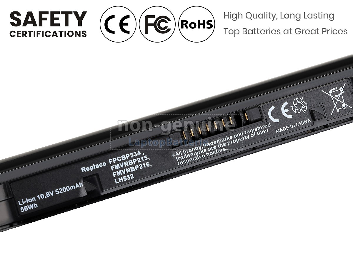 Unser Website ist Ihre Quelle der hochwertigen Fujitsu-Laptop-Batterien! Diese brandneue 4400mAh (6 zelle) Fujitsu FPCBP334 Ersatz Li-ion-Akkus wird mit hochwertigen Zellen von Samsung, LG und Panasonic gefertigt, um die maximale Leistung zu versichern. Das Gehäuse des Fujitsu FPCBP334 Batteriepacks wird aus nicht entzündbarer und sehr robuster Plastik gefertigt, die flammgeschützt und haltbar ist, wenn sie von einer niedrigen Höhe fällt.