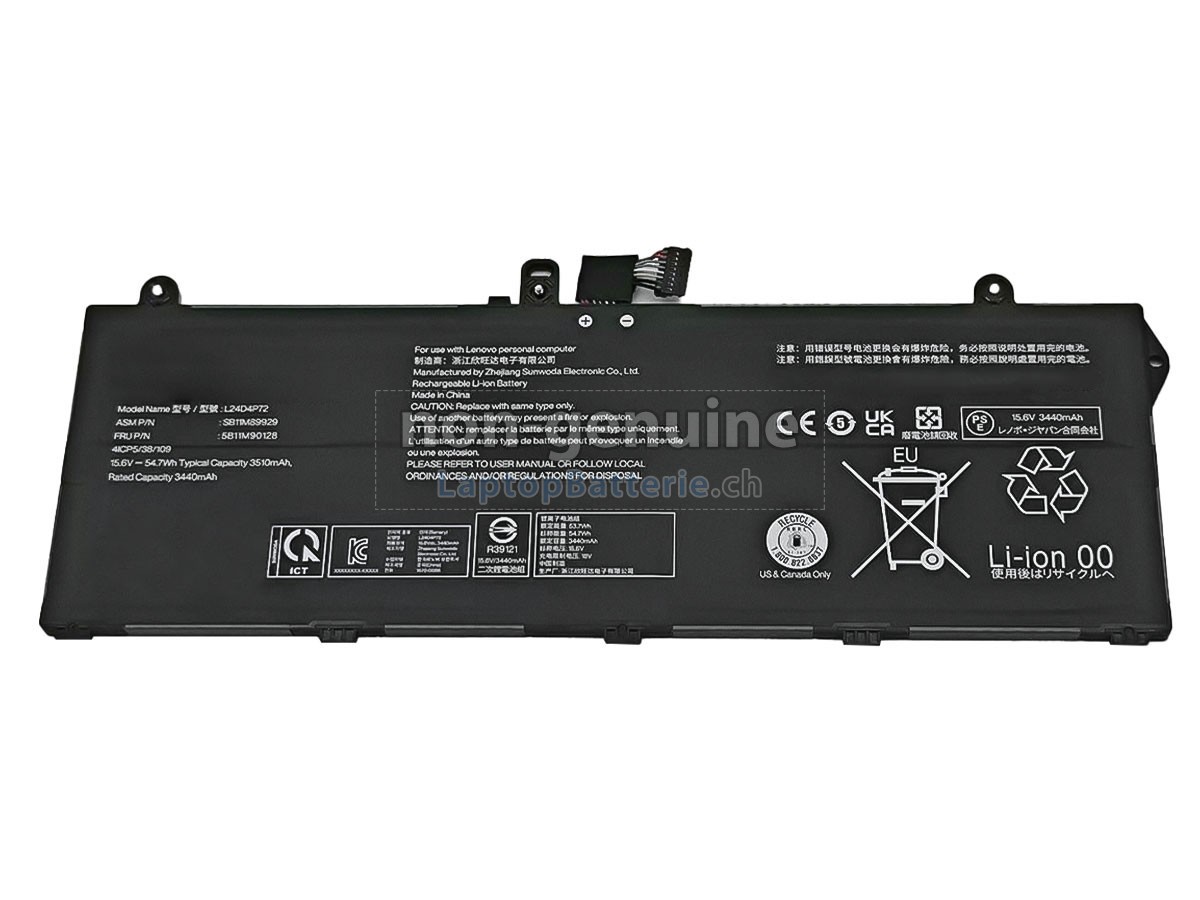 Unser Website ist Ihre Quelle der hochwertigen Lenovo-Laptop-Batterien! Diese brandneue 54.7Wh (4 zelle) Lenovo L24X4P72 Ersatz Li-ion-Akkus wird mit hochwertigen Zellen von Samsung, LG und Panasonic gefertigt, um die maximale Leistung zu versichern. Das Gehäuse des Lenovo L24X4P72 Batteriepacks wird aus nicht entzündbarer und sehr robuster Plastik gefertigt, die flammgeschützt und haltbar ist, wenn sie von einer niedrigen Höhe fällt.