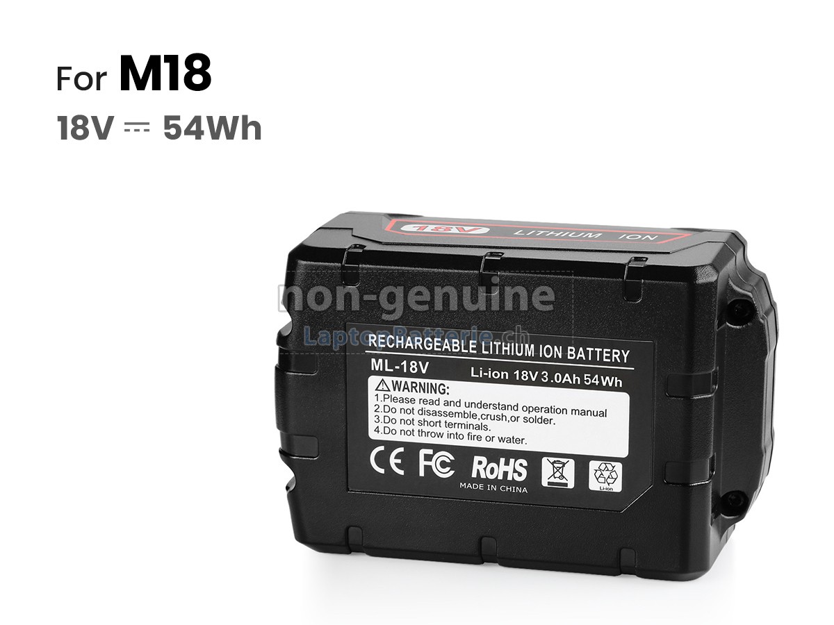 Unser Website ist Ihre Quelle der hochwertigen Milwaukee-Elektrowerkzeuge-Batterien! Diese brandneue 54Wh (10 zelle) Milwaukee 2826-20C Ersatz Li-ion-Akkus wird mit hochwertigen Zellen von Samsung, LG und Panasonic gefertigt, um die maximale Leistung zu versichern. Das Gehäuse des Milwaukee 2826-20C Batteriepacks wird aus nicht entzündbarer und sehr robuster Plastik gefertigt, die flammgeschützt und haltbar ist, wenn sie von einer niedrigen Höhe fällt.