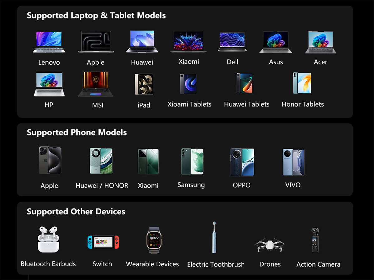 Mit einer Kapazität von 20000mAh versorgt diese Powerbank nicht nur Laptops, sondern auch Smartphones, Tablets, Bluetooth-Kopfhörer, Wearables, Drohnen, Action-Kameras und Handheld-Konsolen zuverlässig mit Energie. Die digitale Ladestandsanzeige informiert präzise über die verbleibende Kapazität. Dank CE-, FCC-, RoHS- und UN38.3-Zertifizierung ist sie für die Mitnahme im Handgepäck auf Flugreisen geeignet.